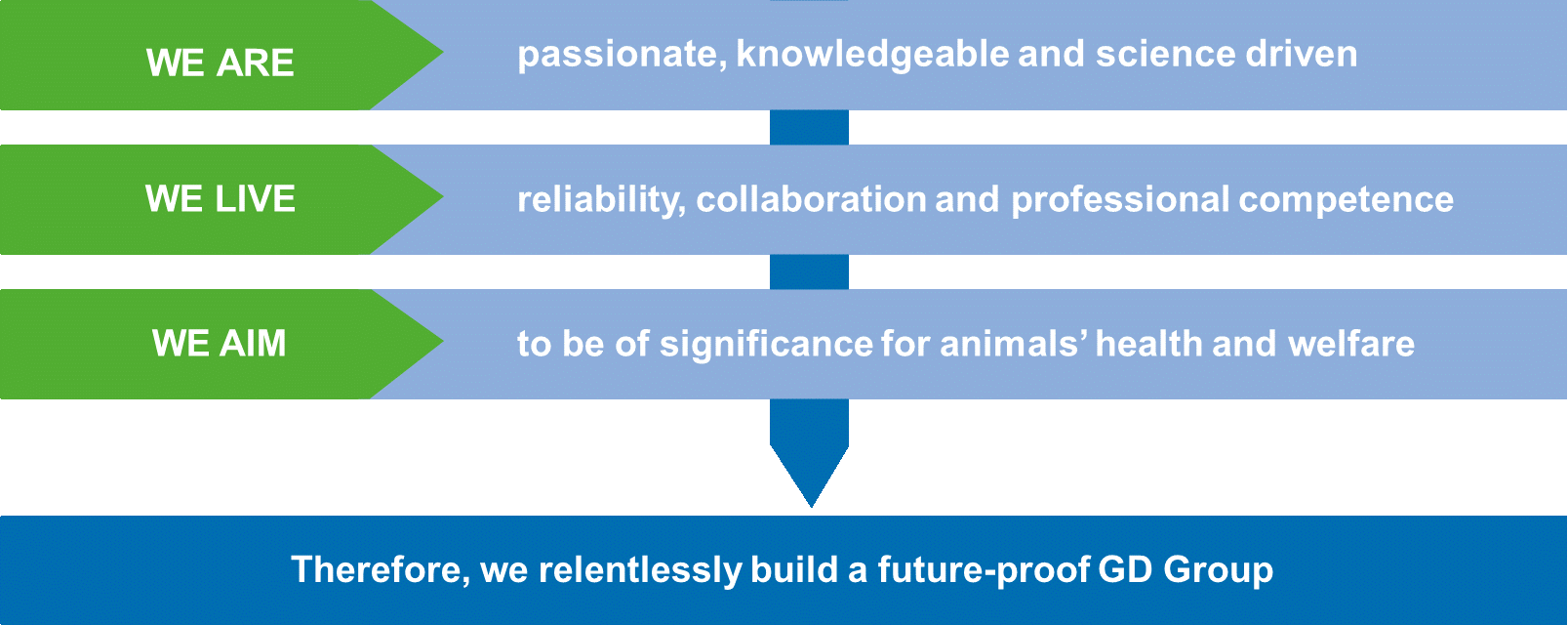 The GD Group is driven by a passion to improve animal health and welfare. We aims to be a leading family of companies that provides insight into animal health through dedication, innovation and continuous improvement of its performance. GD Group companies operate to high standards and strive for efficiency and synergy.
